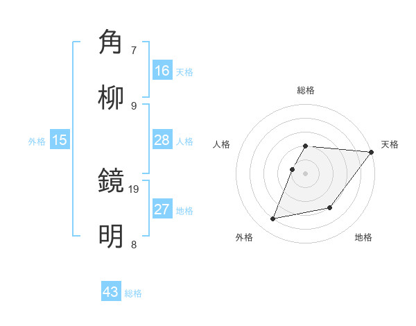 角柳 鏡明さんの天格は16画の5点!
