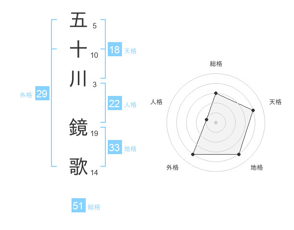 五十川 鏡歌さんを姓名の画数から五運を鑑定
