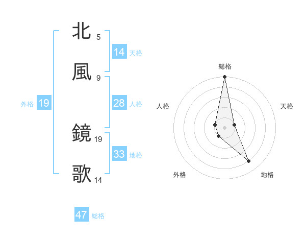 北風 鏡歌さんの総格は47画の5点!