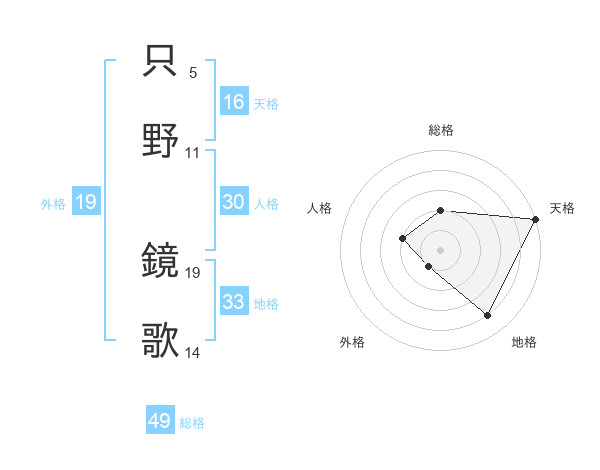 只野 鏡歌さんを姓名の画数から五運を鑑定
