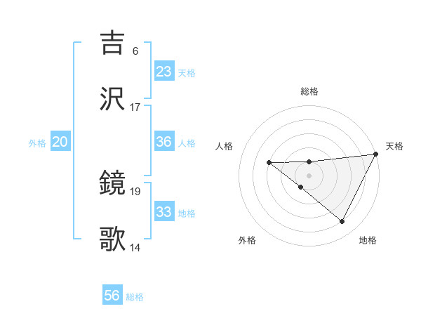 吉沢 鏡歌さんの天格は23画の5点!
