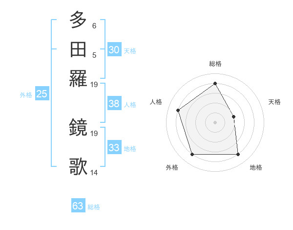 多田羅 鏡歌さんを姓名の画数から五運を鑑定