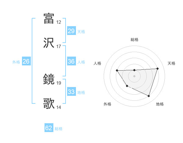 富沢 鏡歌さんを姓名の画数から五運を鑑定