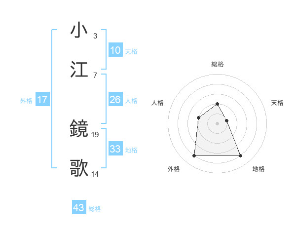 小江 鏡歌さんを姓名の画数から五運を鑑定