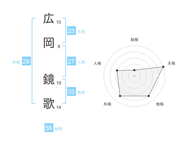 広岡 鏡歌さんを姓名の画数から五運を鑑定