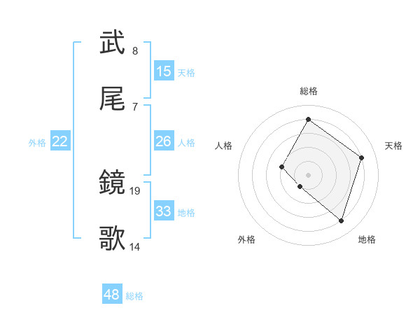 武尾 鏡歌さんを姓名の画数から五運を鑑定