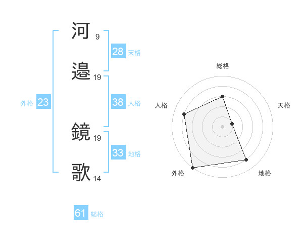 河邉 鏡歌さんを姓名の画数から五運を鑑定