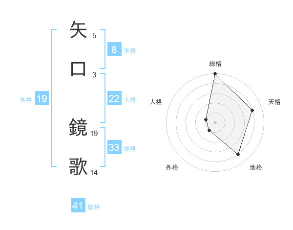 矢口 鏡歌さんの総格は41画の5点!