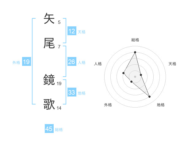 矢尾 鏡歌さんの総格は45画の4点!
