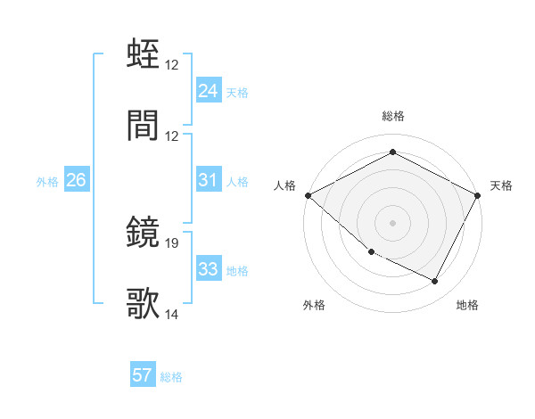 蛭間 鏡歌さんを姓名の画数から五運を鑑定