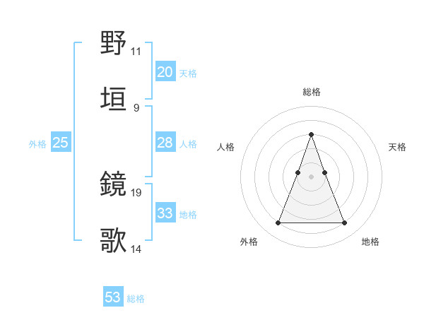 野垣 鏡歌さんの総格は53画の3点!