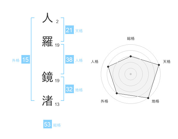 人羅 鏡渚さんを姓名の画数から五運を鑑定