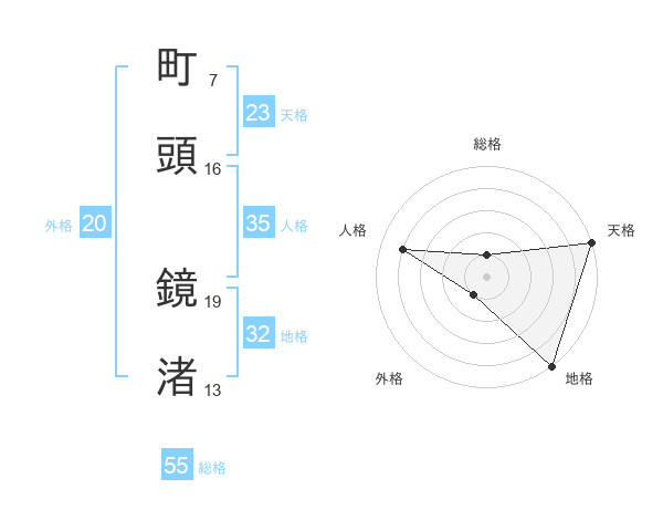 町頭 鏡渚さんの総格は55画の1点!