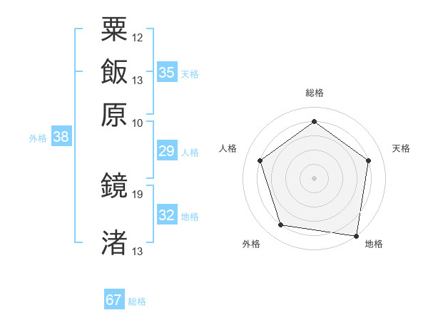 粟飯原 鏡渚さんを姓名の画数から五運を鑑定