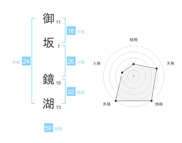 御坂 鏡湖さんを姓名の画数から五運を鑑定