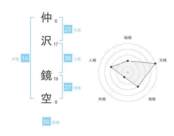 仲沢 鏡空さんを姓名の画数から五運を鑑定