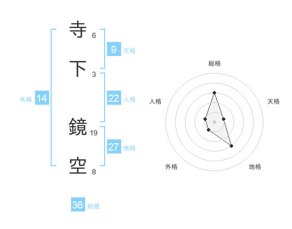 寺下 鏡空さんの総格は36画の3点!