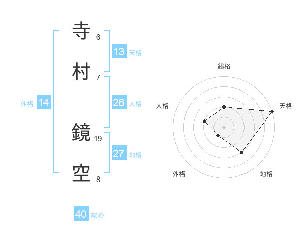 寺村 鏡空さんの天格は13画の5点!
