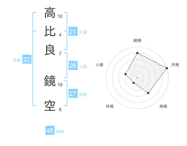 高比良 鏡空さんの天格は21画の5点!