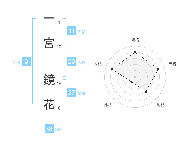 一宮 鏡花さんの総格は38画の4点!