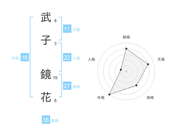武子 鏡花さんの総格は38画の4点!