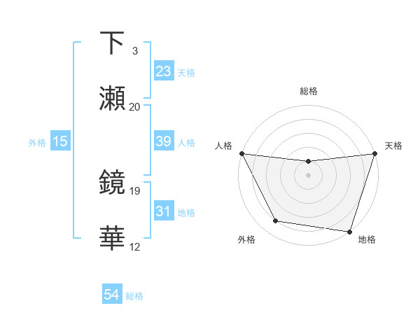下瀬 鏡華さんを姓名の画数から五運を鑑定