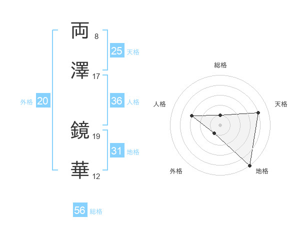 両澤 鏡華さんを姓名の画数から五運を鑑定