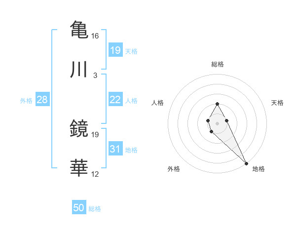亀川 鏡華さんの地格は31画の5点!