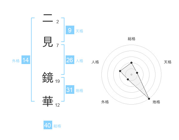 二見 鏡華さんの地格は31画の5点!