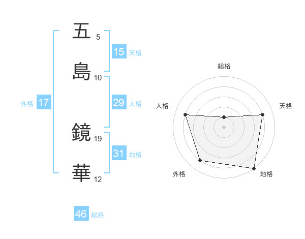 五島 鏡華さんの地格は31画の5点!