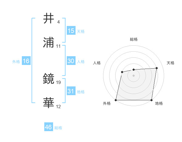 井浦 鏡華さんを姓名の画数から五運を鑑定