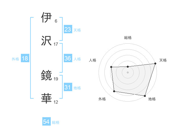 伊沢 鏡華さんを姓名の画数から五運を鑑定