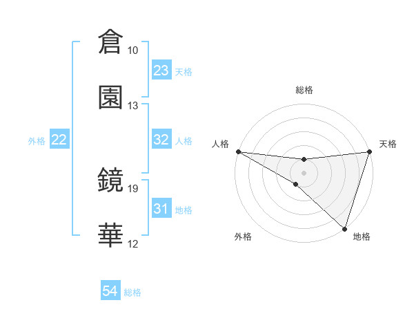 倉園 鏡華さんを姓名の画数から五運を鑑定