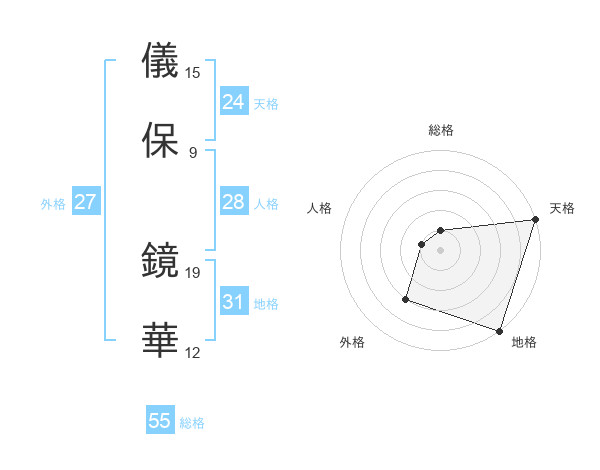 儀保 鏡華さんの天格は24画の5点!