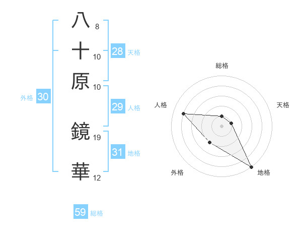 八十原 鏡華さんの総格は59画の1点!