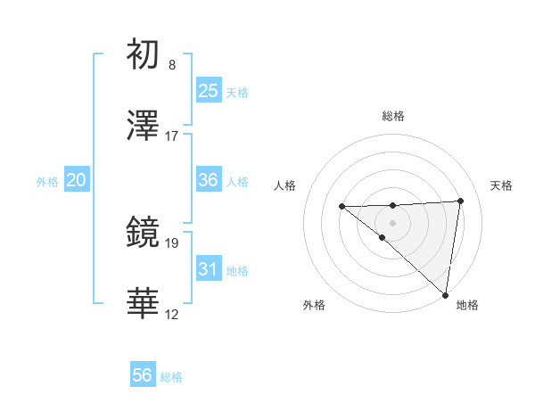 初澤 鏡華さんの総格は56画の1点!