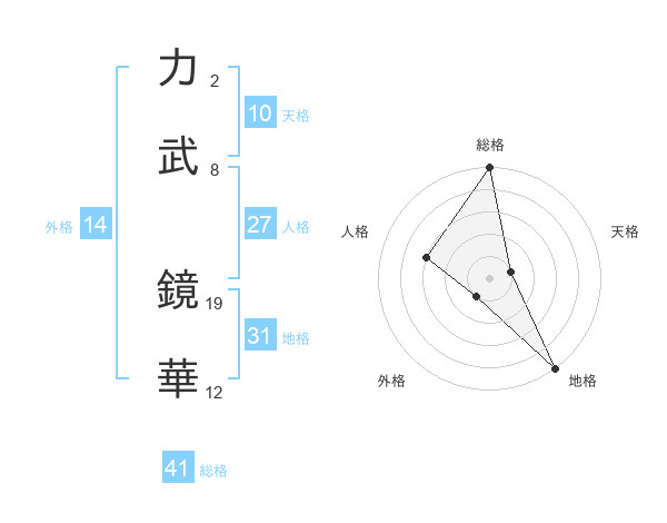 力武 鏡華さんの地格は31画の5点!