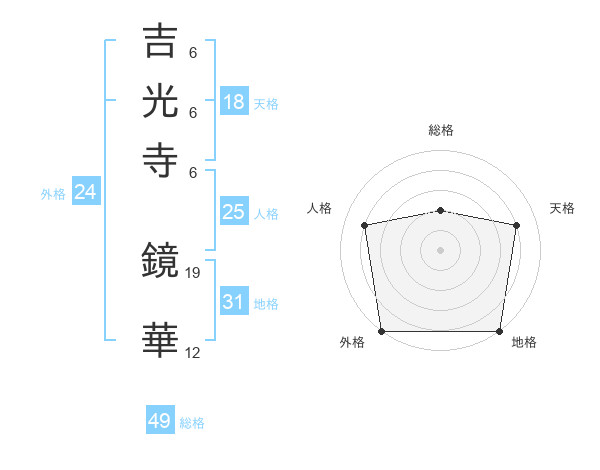 吉光寺 鏡華さんの総格は49画の2点!