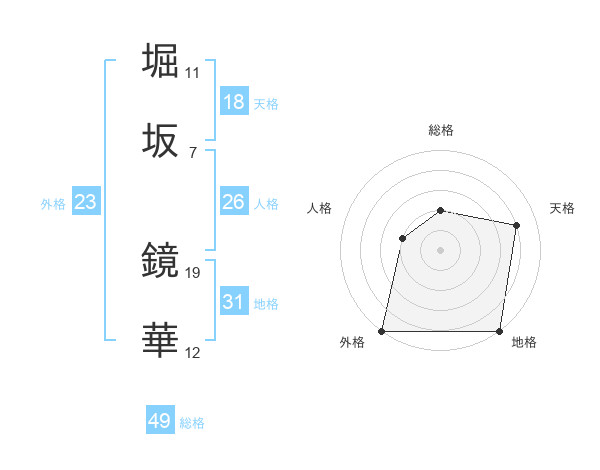 堀坂 鏡華さんの外格は23画の5点!