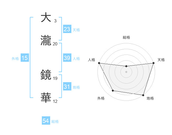 大瀧 鏡華さんの天格は23画の5点!