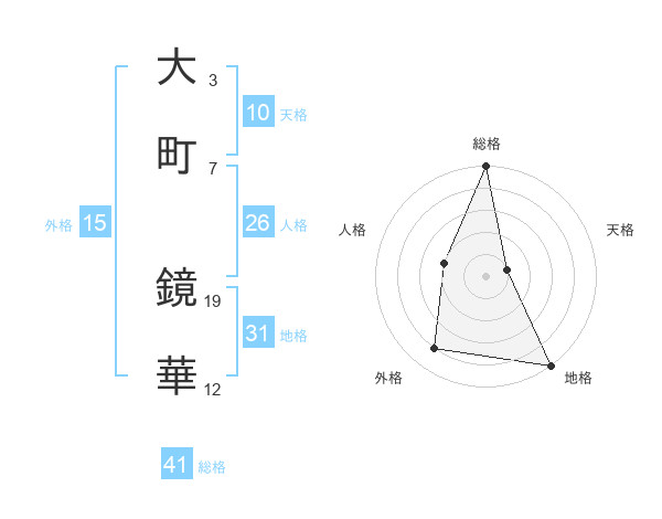 大町 鏡華さんの総格は41画の5点!