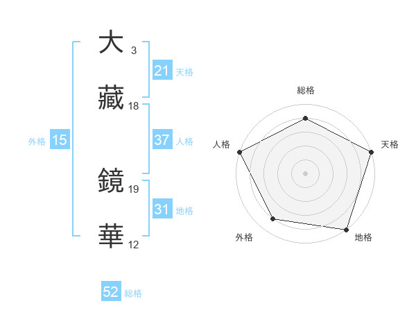 大藏 鏡華さんの総格は52画の4点!