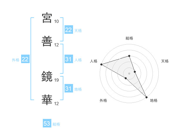 宮善 鏡華さんを姓名の画数から五運を鑑定