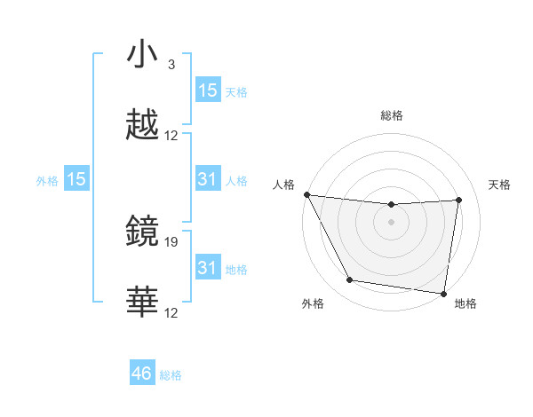 小越 鏡華さんの地格は31画の5点!