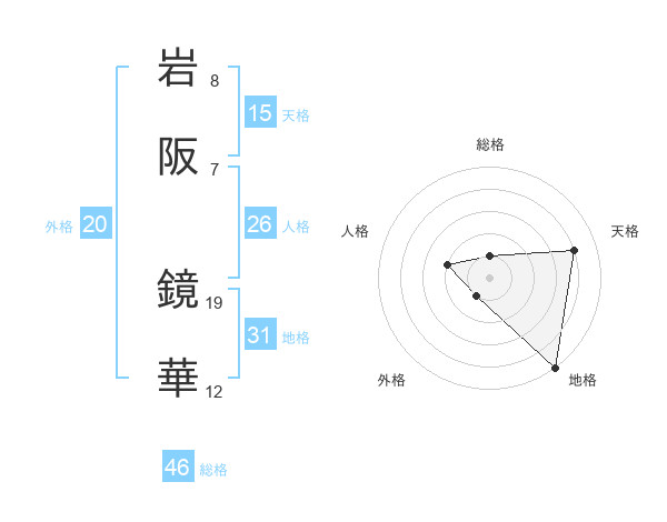 岩阪 鏡華さんの総格は46画の1点!