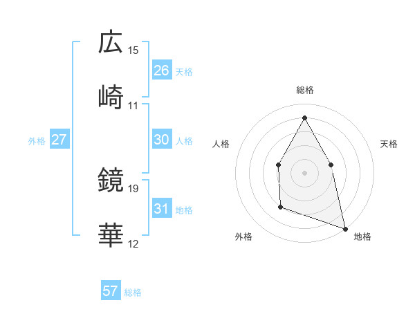 広崎 鏡華さんを姓名の画数から五運を鑑定