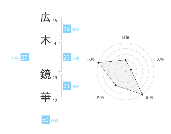 広木 鏡華さんを姓名の画数から五運を鑑定