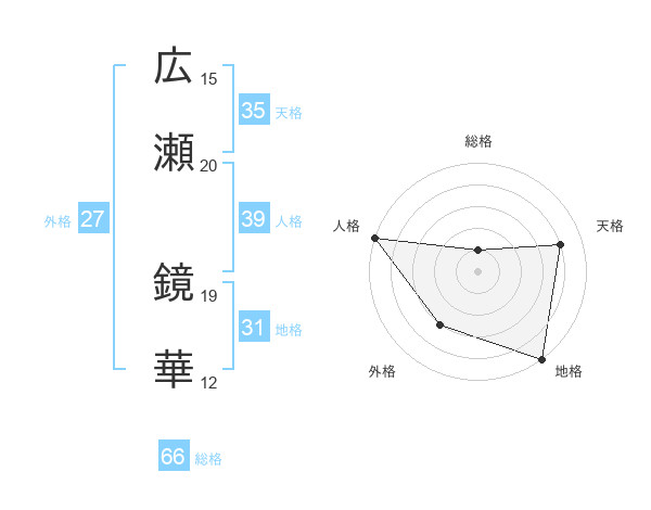 広瀬 鏡華さんの総格は66画の1点!