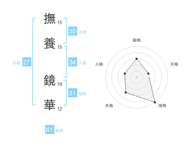 撫養 鏡華さんの地格は31画の5点!