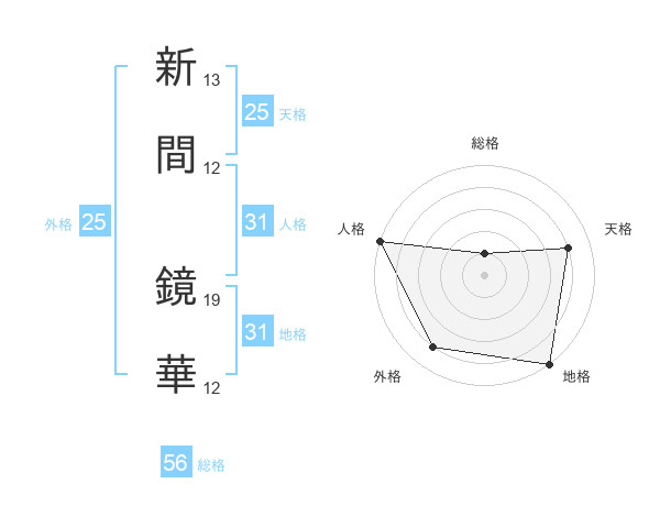 新間 鏡華さんの地格は31画の5点!